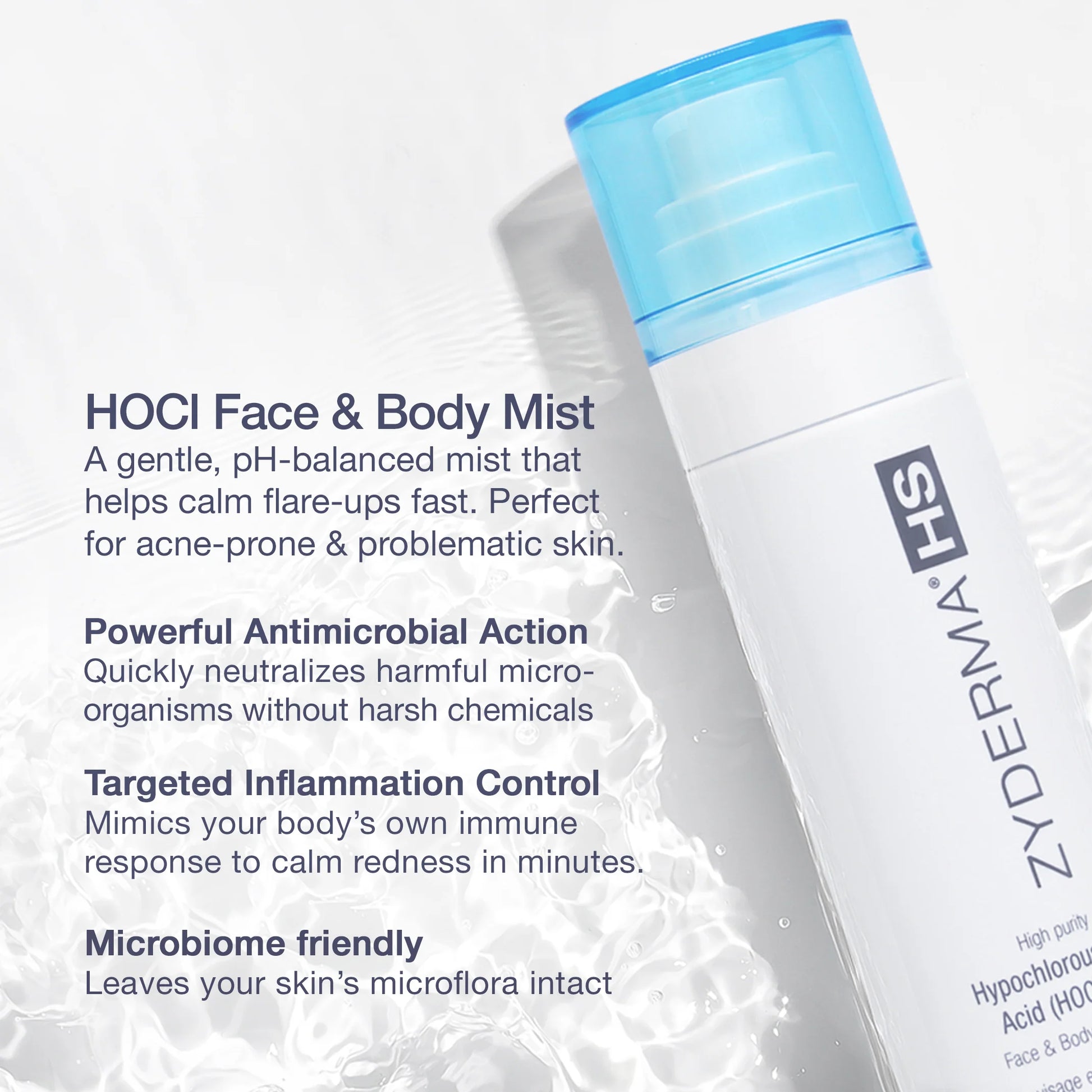 This high-Purity HOCl mist is a versatile soothing toner treatment for fast relief of angry skin. It can be used daily on acne-prone or problem skin on any area of the face or body. Not just for morning or night, it can also be used to freshen skin throughout the day, at work or school. No rinse required!